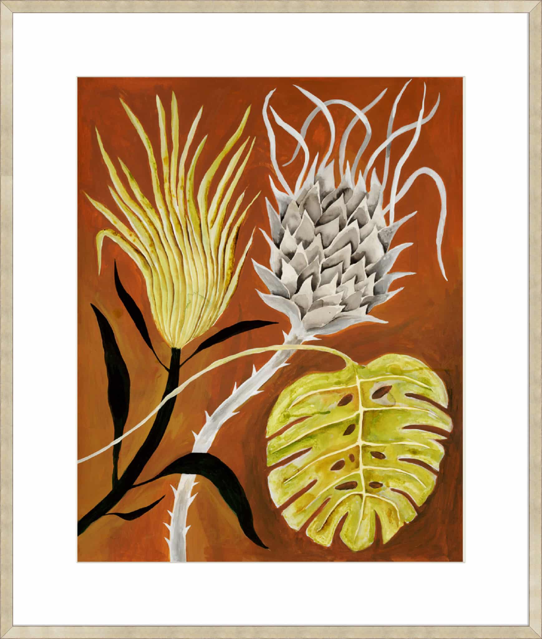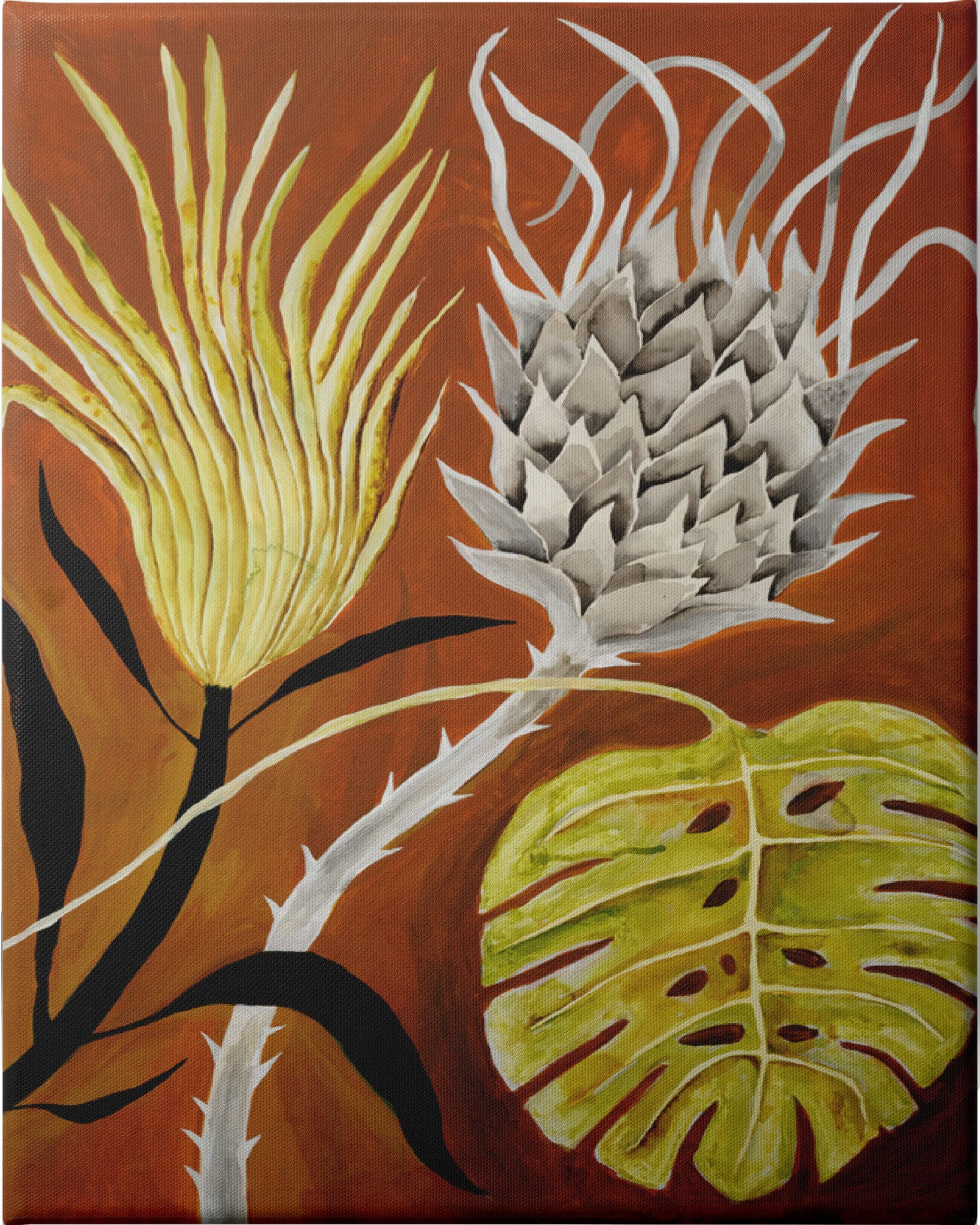 Protea and Monstera Leaf - Unframed Canvas